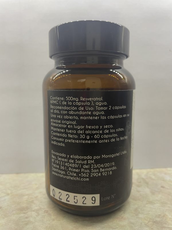 Principio activo: Cada capsula contiene Resveratrol (extracto de piel de uva), contiene gran cantidad de Poli fenoles, proanthocyandinas, antocianinas y flavonoides